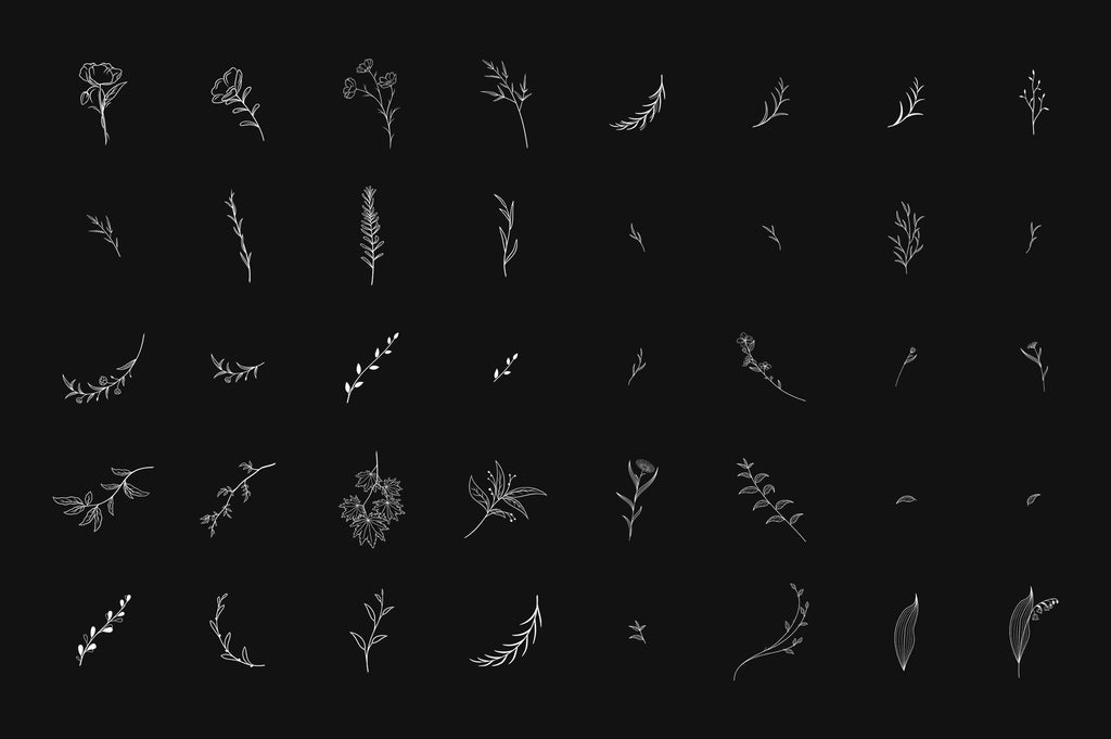 In this collection you will find - awesome botanical elements, wreaths, compositions, photoshop styles. Every illustration comes with 4 color choices - black and white, gold, bronze and rose gold. All the elements are made with solid color - that makes them easy to print :)